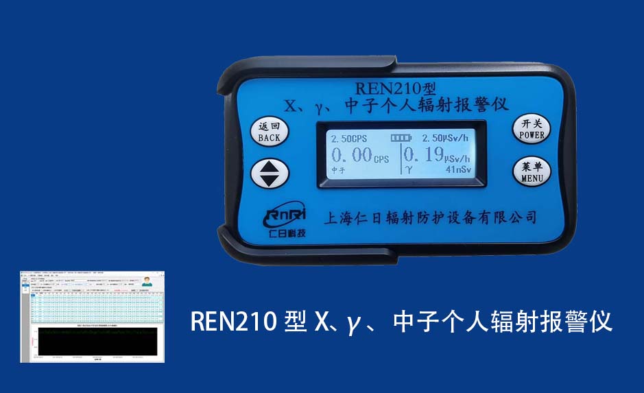 REN210型X、γ、中子個人輻射報(bào)警儀內(nèi)置SiPM和鋰玻璃晶體組成中子探測器儀器,采用反照率方式探測中子射線,同時(shí)也能探測X、γ射線。因此它可同事監(jiān)檢測X、γ、中子三種射線。能顯示工作場所的劑量當(dāng)量率和累積劑量,更換電池時(shí),日期及累積數(shù)據(jù)能永久保存。可選配RenRiPersonal個人劑量管理軟件,該軟件可存儲多個人的歷史數(shù)據(jù),能記錄日累積、月累積、年累積、輻照時(shí)長、計(jì)算平均劑量率、扣除或不扣除本底輻射,且以文字和圖譜的方式展現(xiàn)數(shù)據(jù)。廣泛應(yīng)用于環(huán)保、化工、水泥、煤礦、土木工程、石油、醫(yī)院、疾控、進(jìn)出口商檢、核電、加速器、機(jī)場、中子源庫和其他安檢、邊境控制海關(guān)檢測等